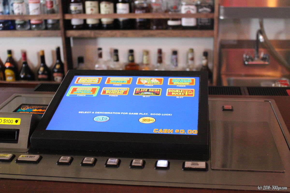 Slot machines embedded in the bar. Don't have to move a muscle to lose your money.