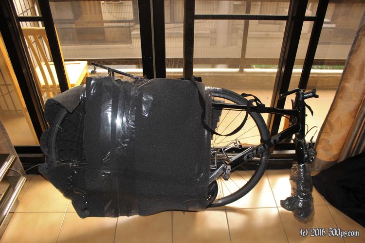 I wrapped most of the bike in foam, strapped the front tire to the frame, put in a fork guard, and slapped a bicycle bag (purchased from Giant) over it. That's the extent of protection.