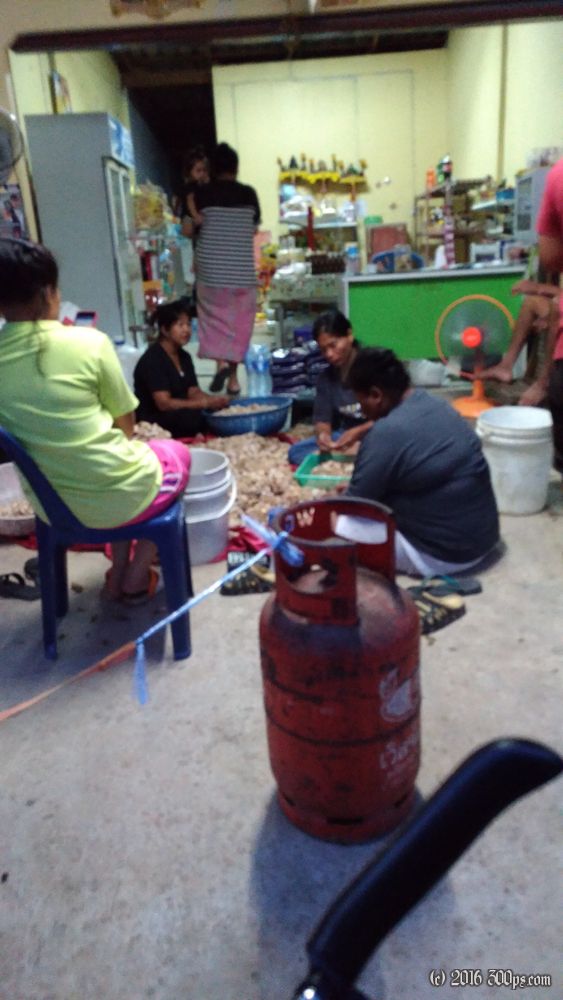 The people in a tiny village that helped me contact the bungalow owner. They were sitting around husking some kind of fruit I didn't recognize.