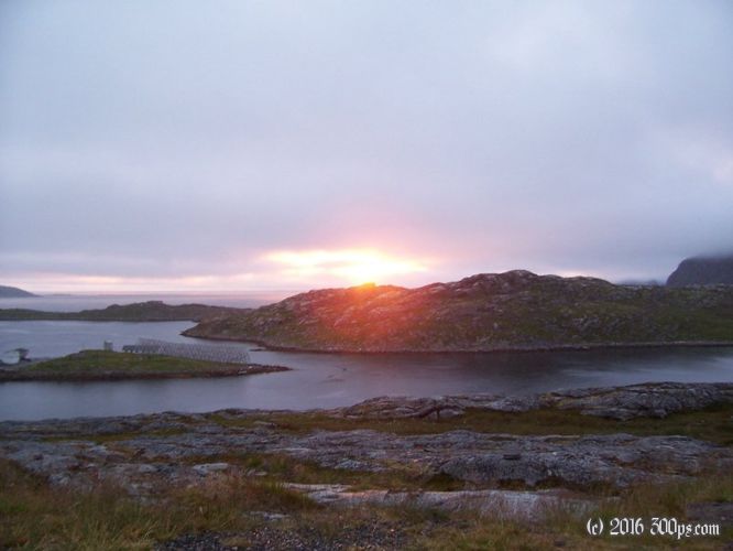 Wed. 11:15PM - Drive to Skarsvåg looking for the sun. You can see that the sun is out at sea level, Nordkapp is so high it is in the clouds right now, but Skarsvåg is facing the wrong direction. I pull out the map and find the closest village that is on the west coast and head that way.
