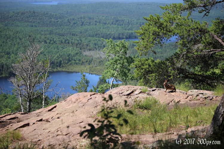 I'm happy to be leaving the tent and half my gear in place today at the campsite while I go hiking. The ranger I talked to yesterday recommended hiking Eagle Mountain so off I go. The trailhead is only a couple of miles of gravel road to the north of my campsite. Halfway there I see a great big bull moose up ahead on the side of the road. He's a magnificent beast; his black rack splayed out like a medusa against the backdrop of the pine forest. He's staring at me... probably trying to determine what I am and if I represent a threat. My camera is in my backpack, I stop short and try to dig it out as quickly as I can. I'm still fumbling with the pack when the moose spooks and runs across the road to disappear into the forest. I'm bummed I couldn't bring the camera to bear in time. I move up to where he disappeared, park the bike, and poke around in the woods by the side of the road a bit; but he's gone.