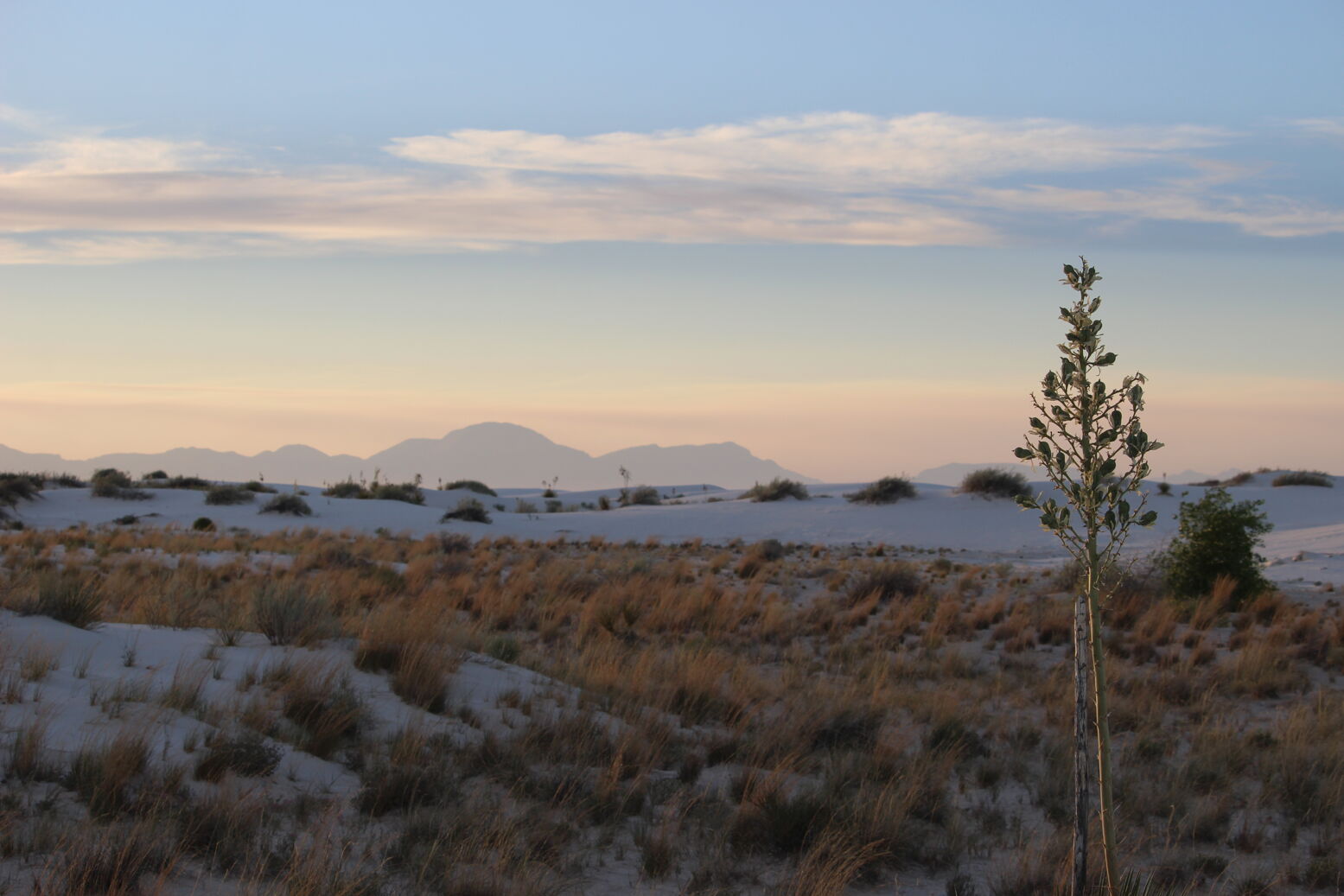 Yucca tree in the foreground, San Andres Mountains in the distance.