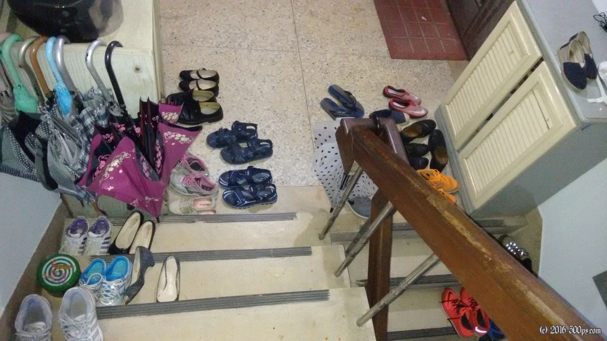 People leave their shoes outside their appartments, the stairwells are full of them.